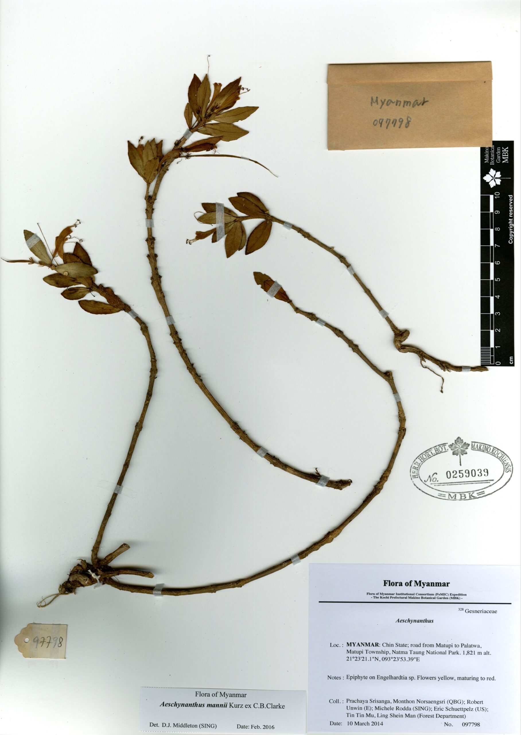 Aeschynanthus mannii Kurz ex C.B.Clarke