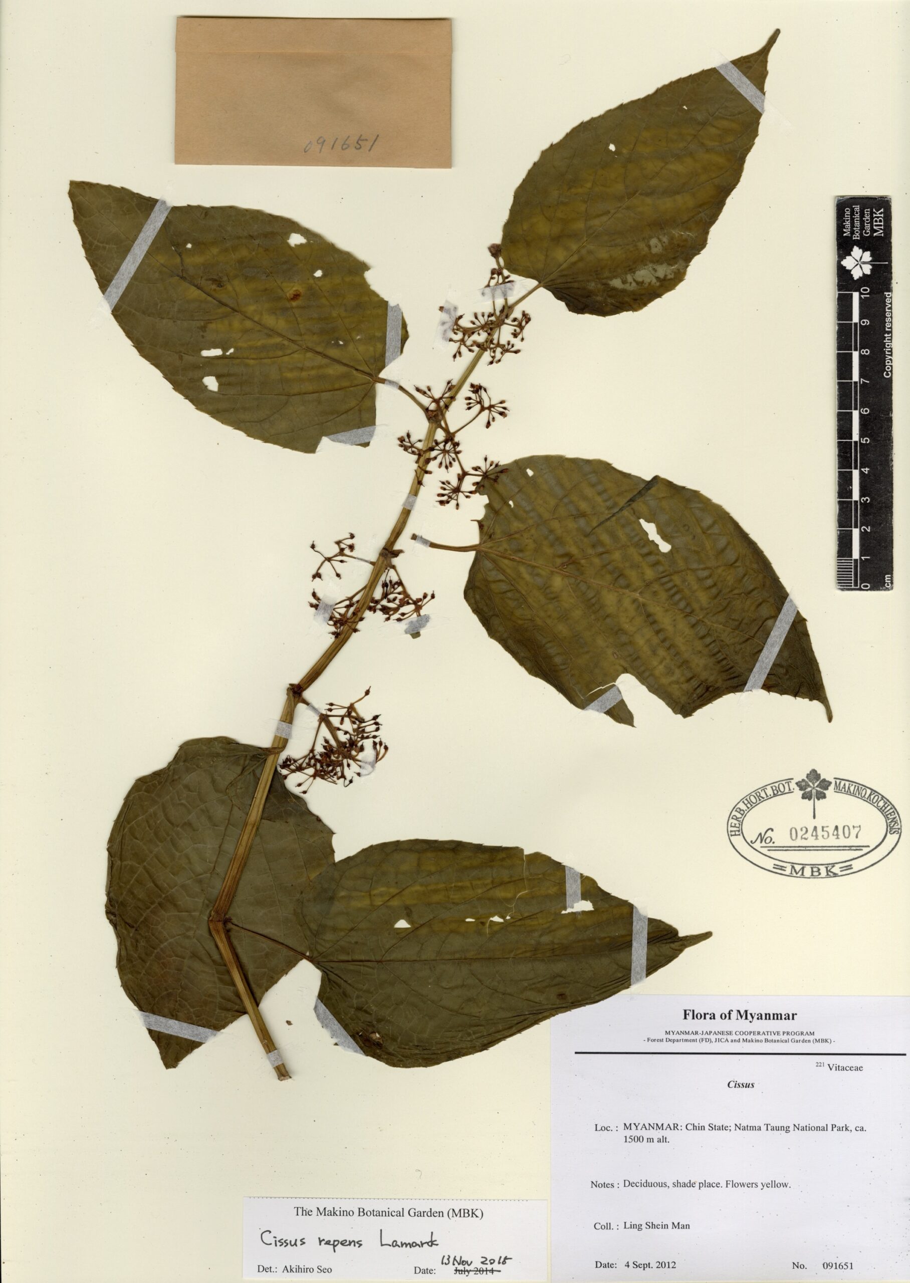 | Notes | Deciduous forest, shade place. Flowers yellow. JICA_R004 |