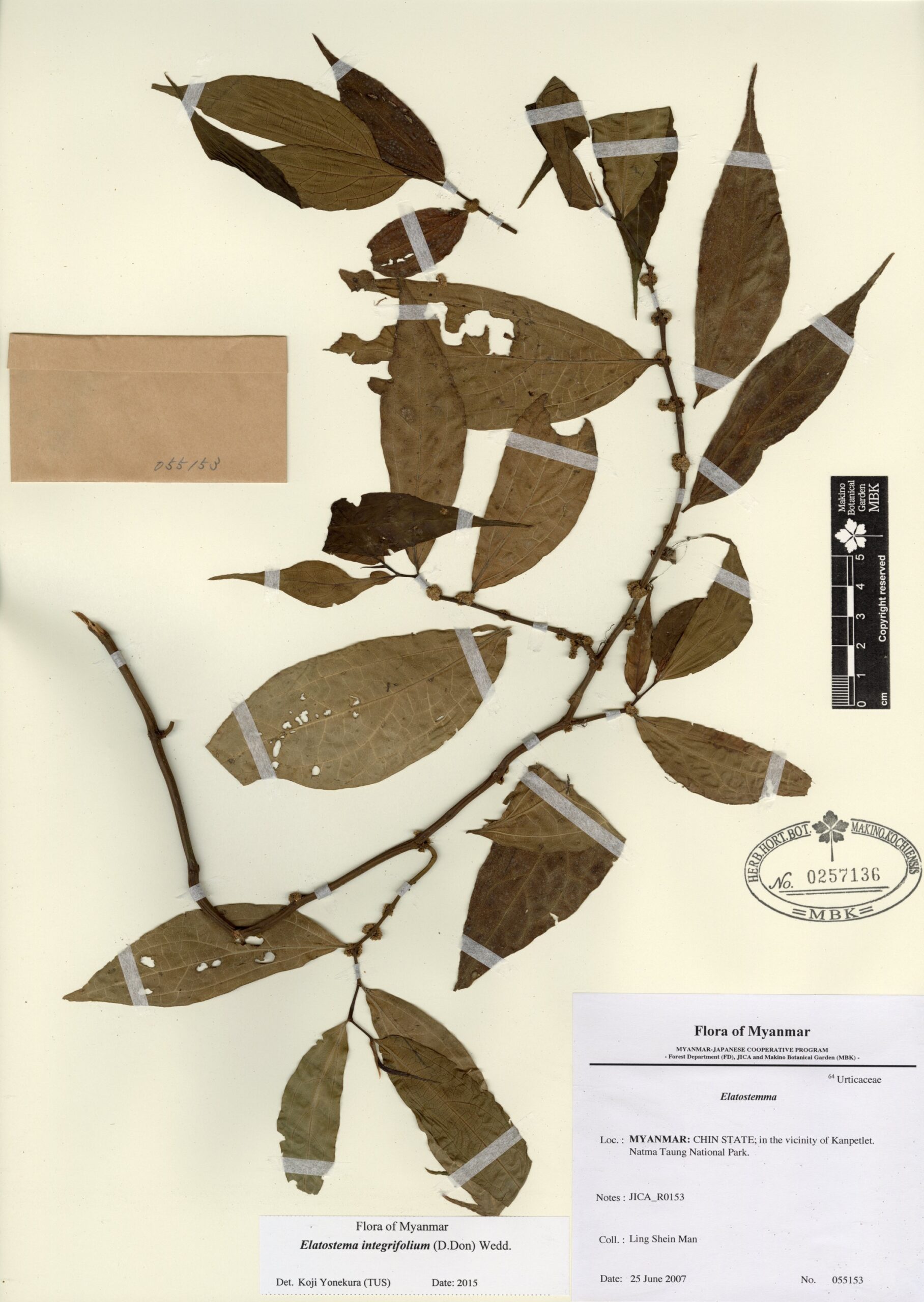 Urticaceae | Elatostema integrifolium (D.Don) Wedd. | MYANMAR: CHIN STATE; in the vicinity of Kanpetlet. Natma Taung National Park. |