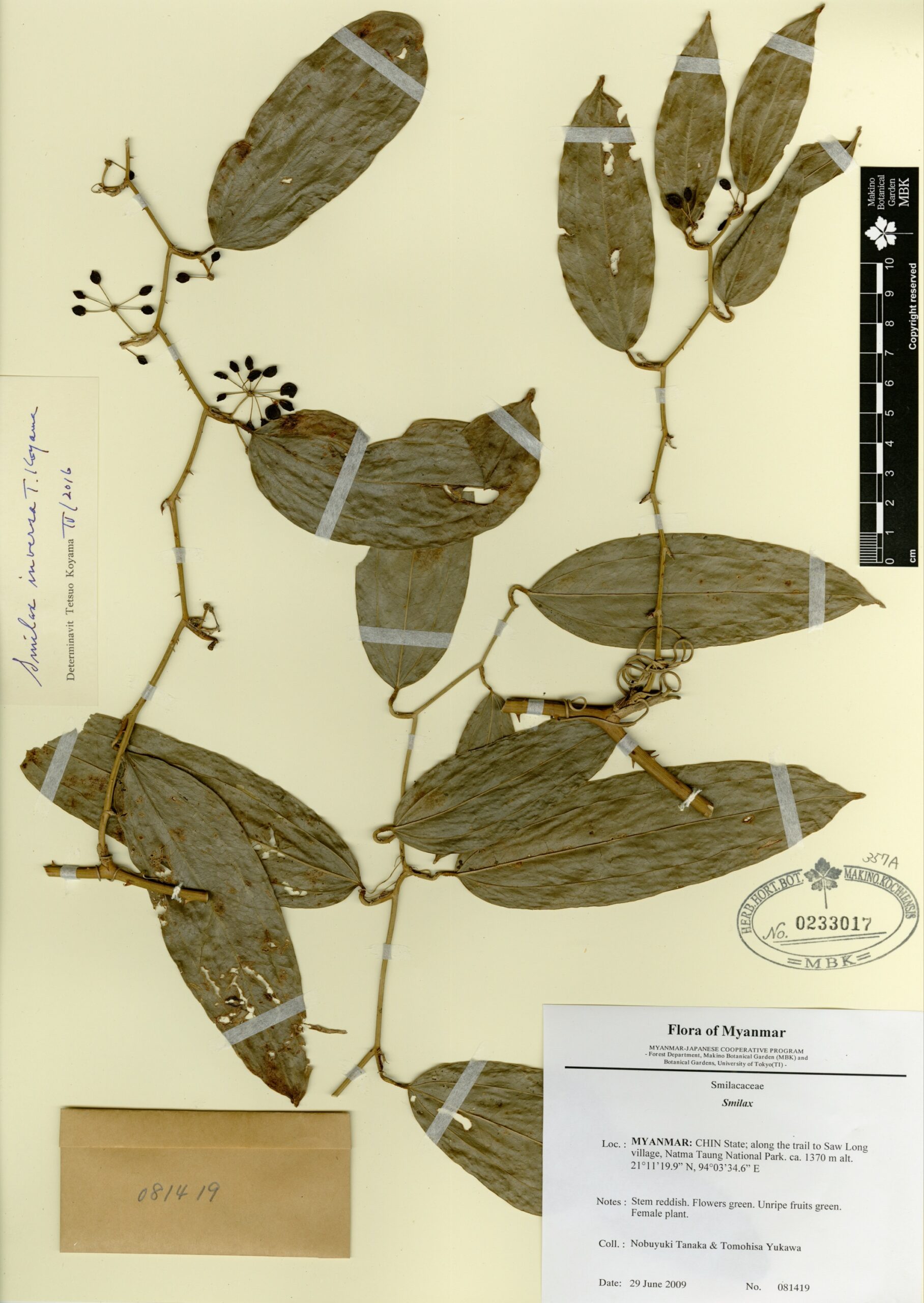 Smilax myanmarensis T. Koyama sp. nov. |