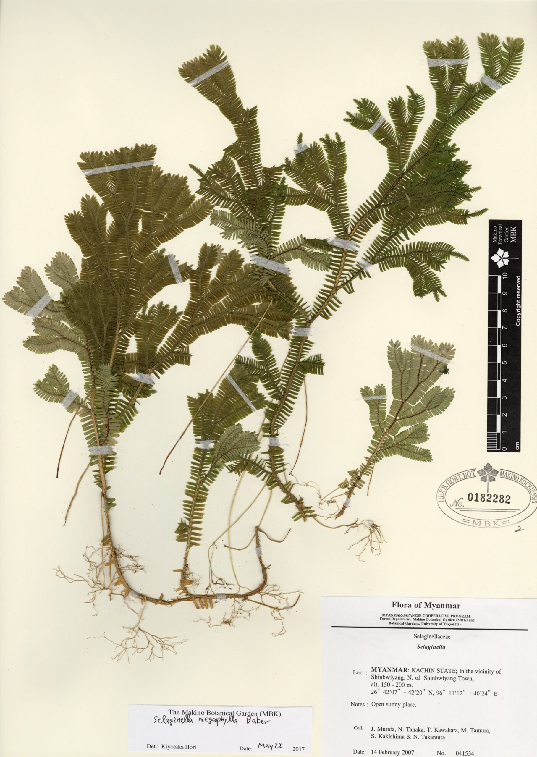Selaginellaceae | Selaginella megaphylla Baker | MYANMAR: KACHIN STATE; In the vicinity of Shinbwiyang, N. of Shinbwiyang Town. | 14 February 2007 | J. Murata, N. Tanaka, T. Kawahara, M. Tamura, S. Kakishima & N. Takamura; |