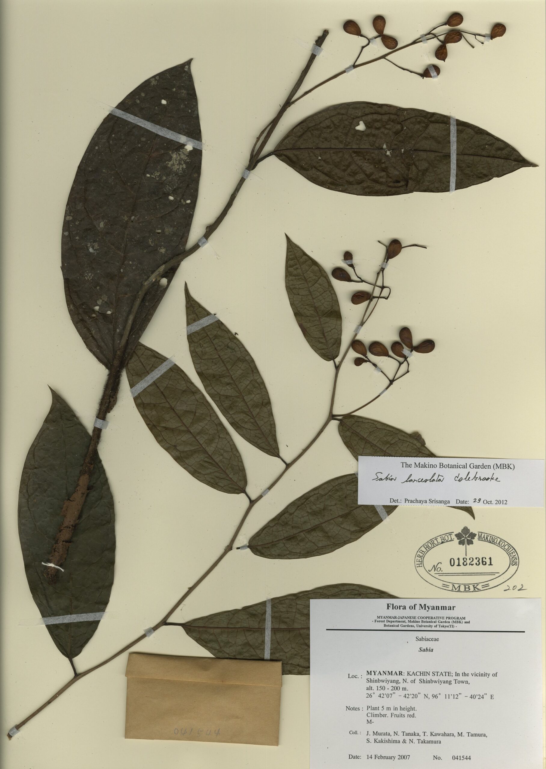Sabiaceae | Sabia lanceolata Colebrooke | MYANMAR: KACHIN STATE; In the vicinity of Shinbwiyang, N. of Shinbwiyang Town. | 14 February 2007 | J. Murata, N. Tanaka, T. Kawahara, M. Tamura, S. Kakishima & N. Takamura; |