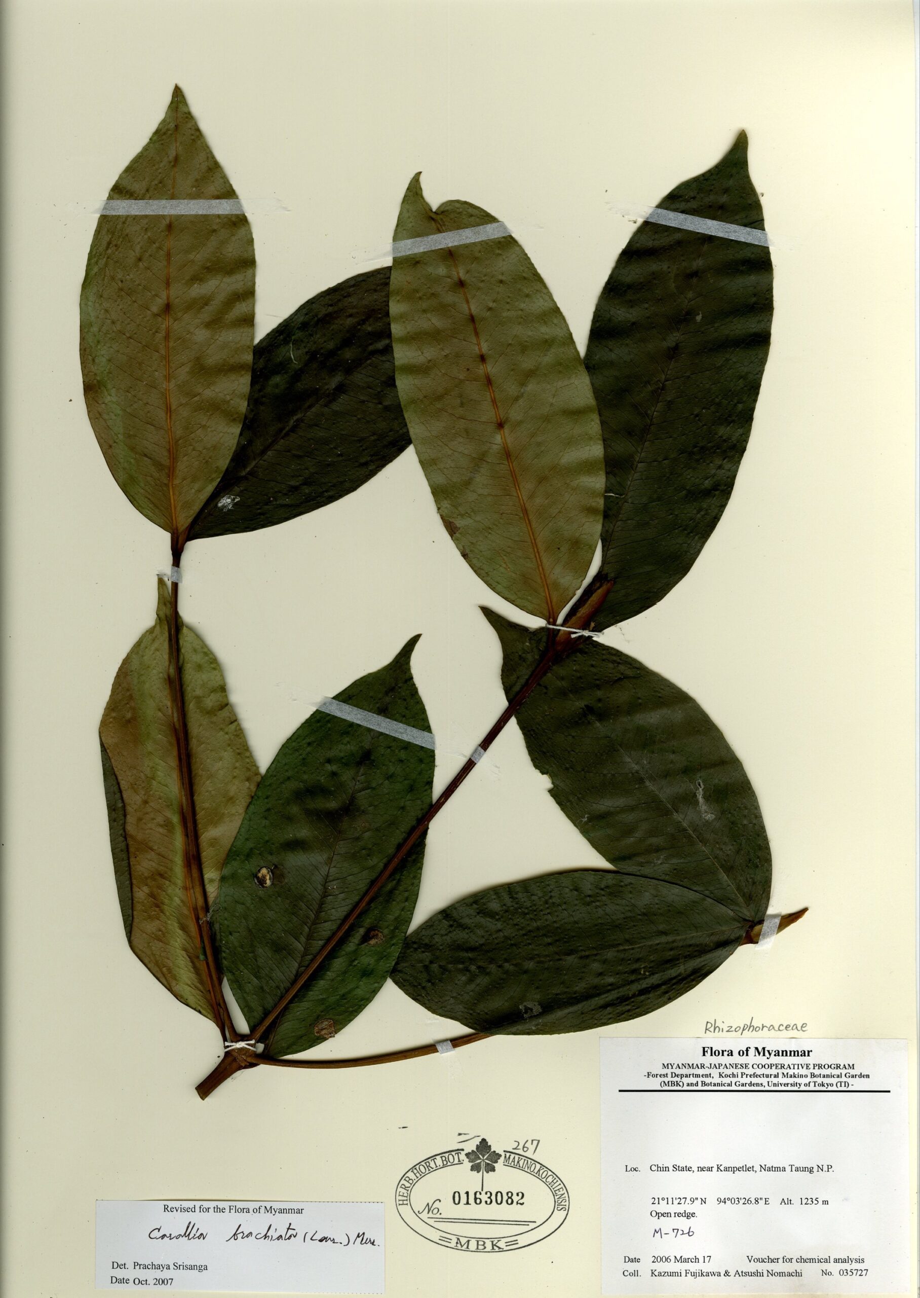 Rhizophoraceae | Carallia brachiata (Lour.) Merr. | Chin State, near Kanpetlet, Natma Taung N.P. | 17 March 2006 | Kazumi Fujikawa & Atsushi Nomachi; | 035727 | 0163082 |
