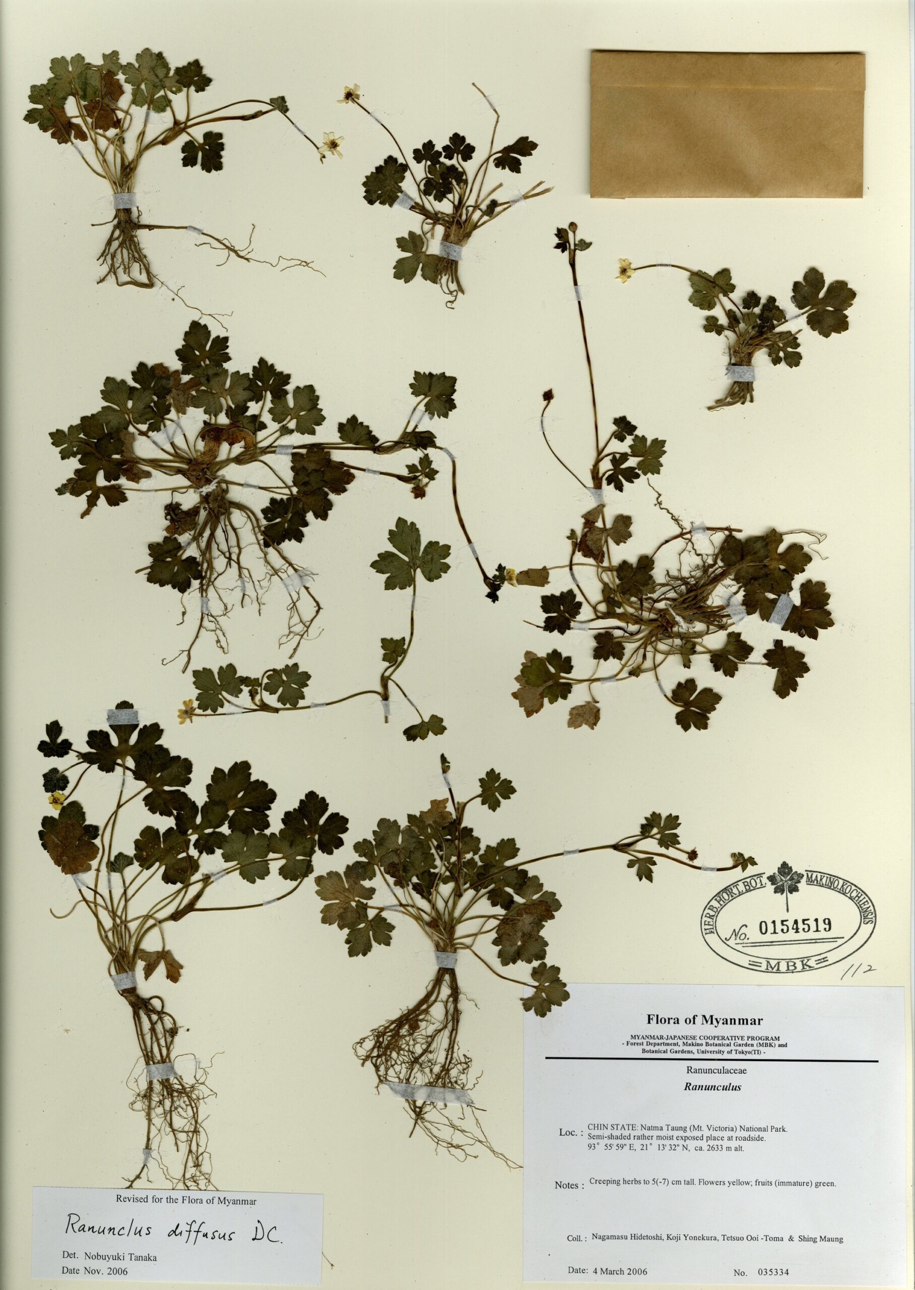 Ranunculaceae | Ranunculus diffusus DC. | MYANMAR: CHIN STATE: Natma Taung (Mt. Victoria) National Park. Semi-shaded rather moist exposed place at roadside. |