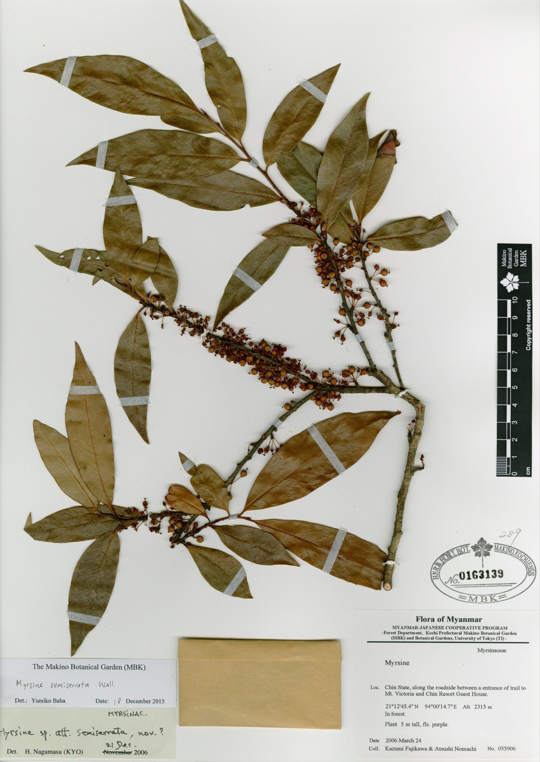Primulaceae | Maesa manipurensis Mez | MYANMAR: KACHIN STATE; Ledo Road between Tanain and Shinbwiyang. | 11 February 2007 | J. Murata, N. Tanaka, T. Kawahara, M. Tamura, S. Kakishima & N. Takamura; |