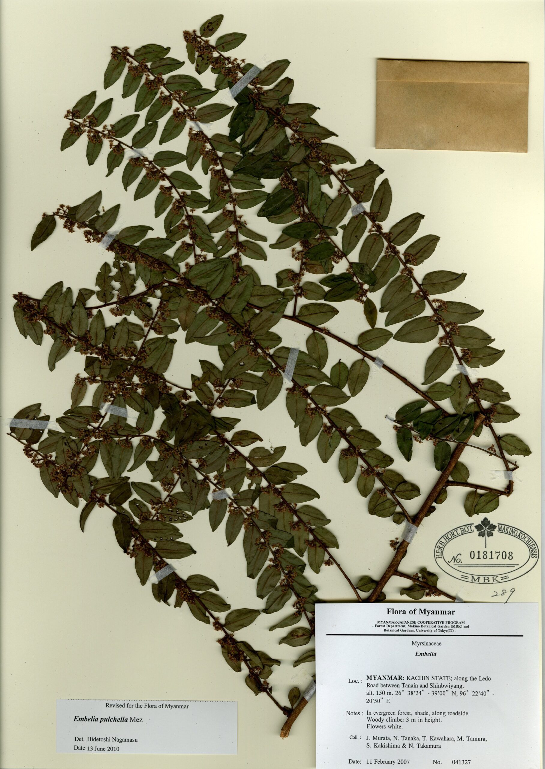 Primulaceae | Embelia pulchella Mez | MYANMAR: KACHIN STATE; along the Ledo Road between Tanain and Shinbwiyang. | 11 February 2007 | J. Murata, N. Tanaka, T. Kawahara, M. Tamura, S. Kakishima & N. Takamura; |