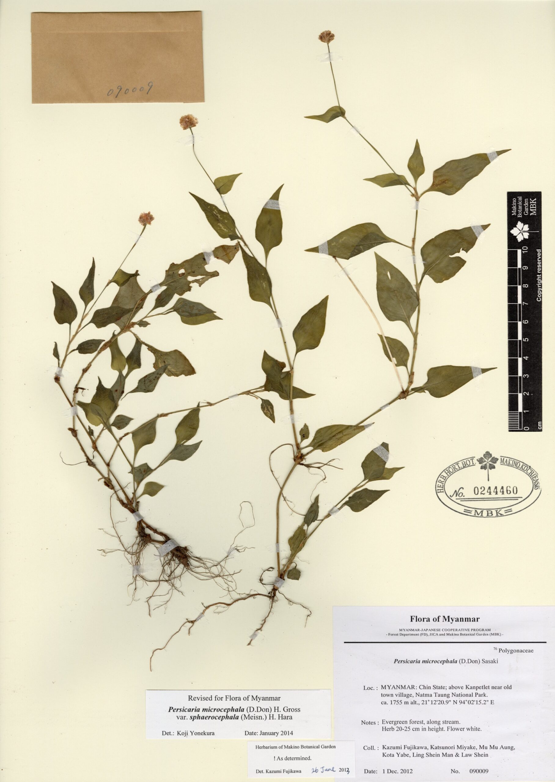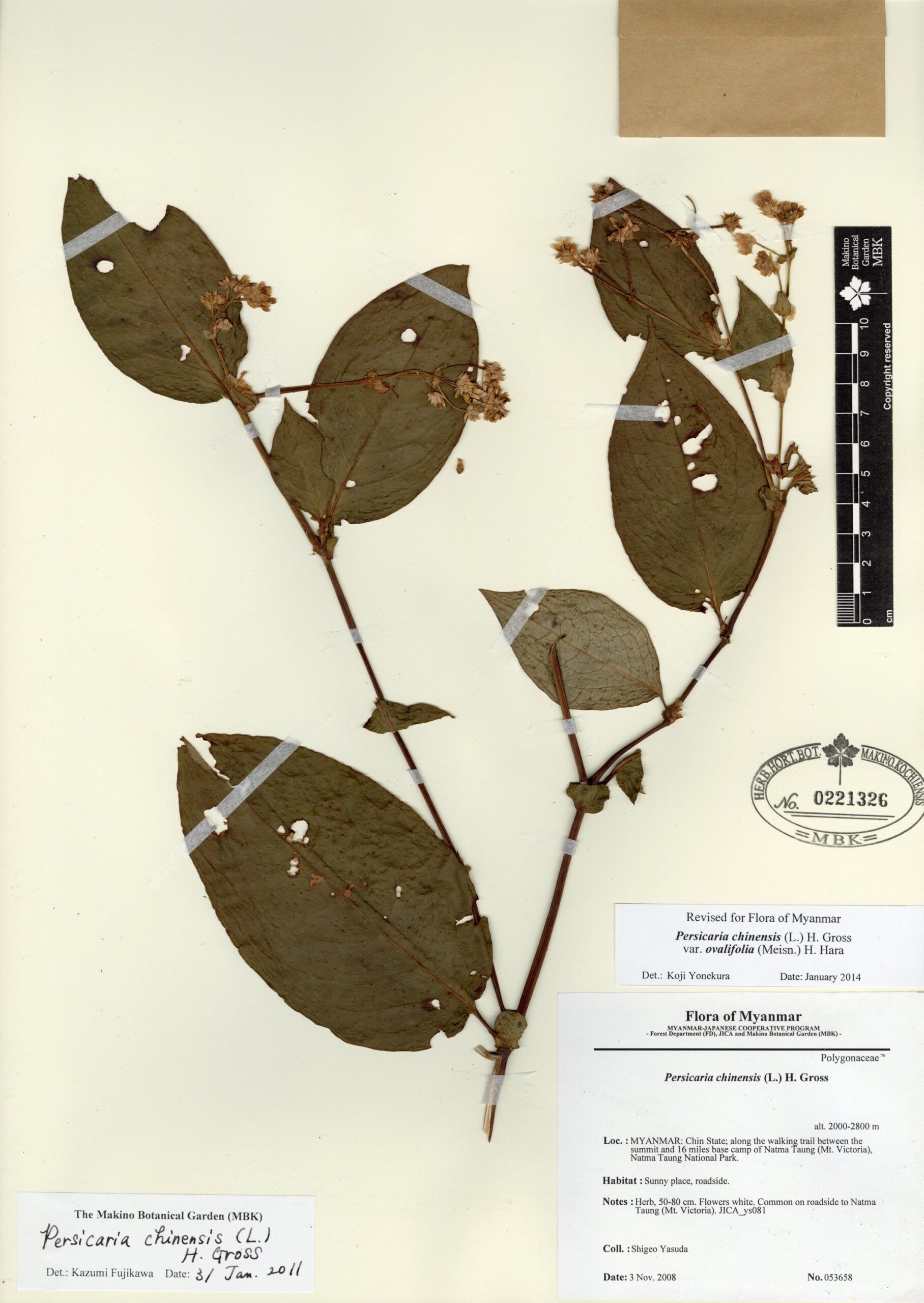 Polygonaceae | Persicaria strindbergii (J.Schuster) Yonek. | MYANMAR: CHIN State; 16 miles N from Mindat, Natma Taung National Park. | 24 June 2009 | Nobuyuki Tanaka & Tomohisa Yukawa; | 081130 | 0232252 |