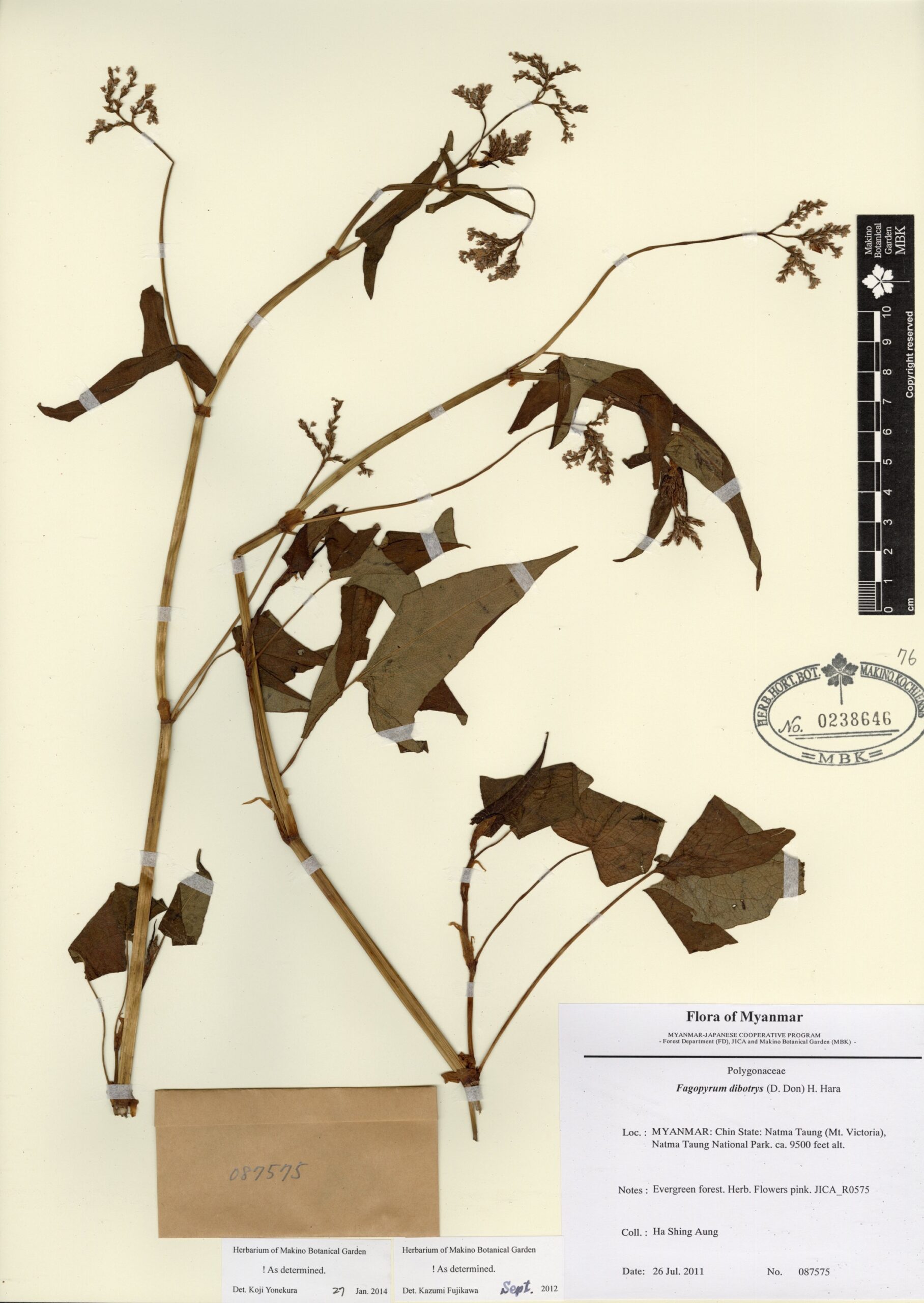 Polygonaceae | Fagopyrum dibotrys (D.Don) H.Hara | MYANMAR: Chin State: Natma Taung (Mt. Victoria), Natma Taung National Park. | 26 July 2011 | Ha Shing Aung; | 087575 | 0238646 |