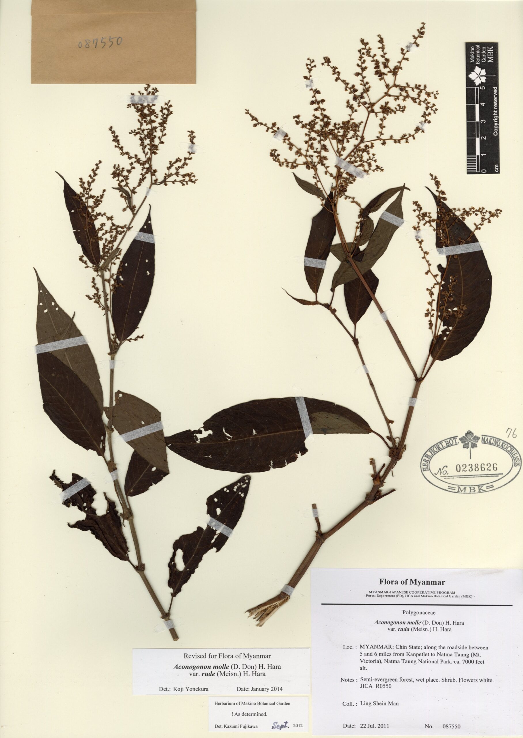 Polygonaceae | Persicaria posumbu (Buch.-Ham. ex D. Don) H. Gross | MYANMAR: SHAN State: along the trail in evergreen forest, Yae Aye Kan, Kalaw Township. | 26 November 2008 | Nobuyuki Tanaka, Takashi Sugawara, Akiyo Naiki & Yu Ito; | 080221 | 0215468 |