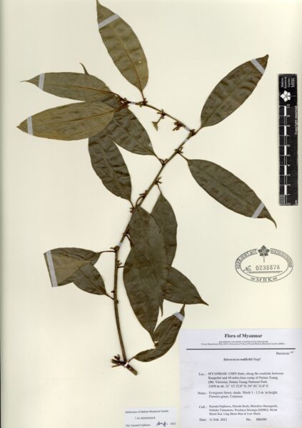 | Notes | Evergreen forest, shade. Shrub. Fruits dark. JICA_R1167 | ||||