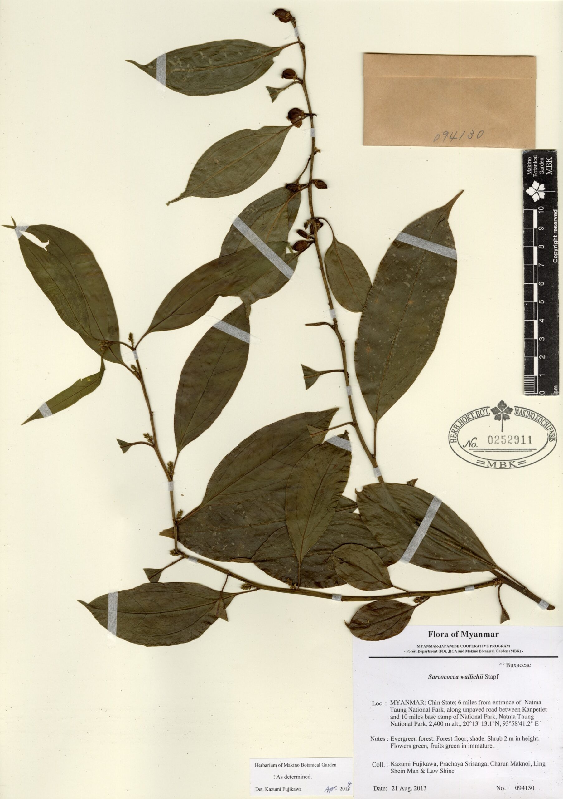 Notes Evergreen forest. Forest floor, shade. Shrub 2 m in height. Flowers green, fruits green in immature.